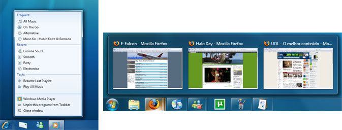 Foi uma merda bem grande. Tentando inovar o que não precisa e já funciona muito bem a Microsoft reformou a barra de tarefas de modo que agora ela é 10 pixels mais grossa do que nas versões anteriores e exibe apenas os ícones dos programas (apesar de ser possível configurar para aparecer o nome das janelas como nos anteriores). Até aí dá pra se adaptar, o problema decorre do fato que essa nova barra mistura os ícones de inicialização rápida com os programas que estão ativos e com os ícones de status, usando uma distinção gráfica que não salta aos olhos.